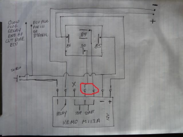 The last thing to do is now connect the glow plug relay across the Kemo relay pins... one to the glow plug relay and the other to earth.